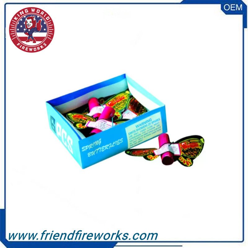 Spring Butterfly Fireworks look like a butterfly. It spins upward in the air with whistle, emit showers of sparks...